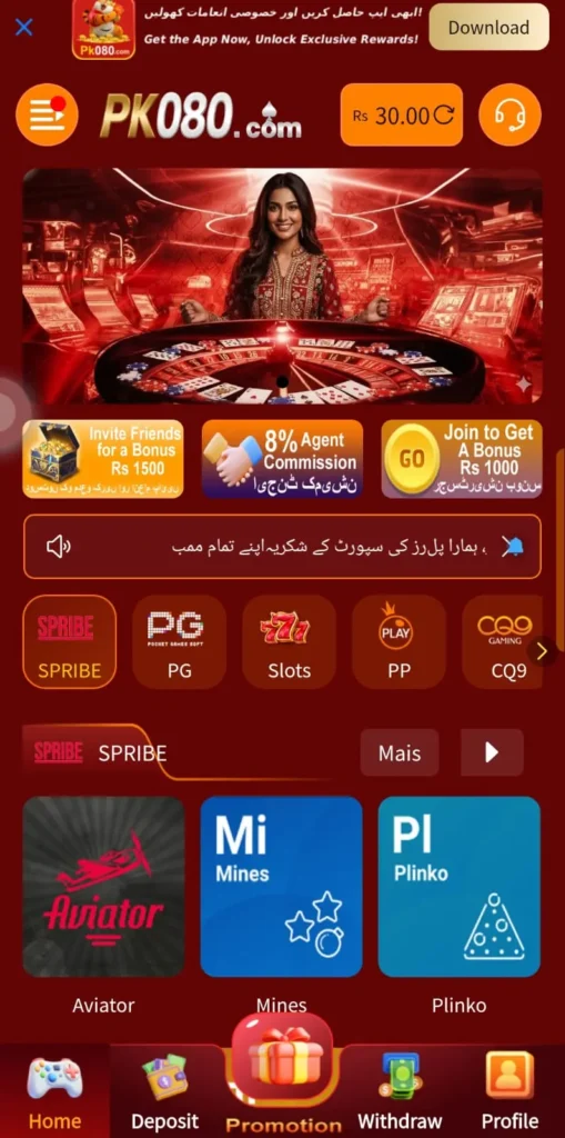 PK080 Game is a modern online casino-style gaming platform for Pakistani users. It offers multiple games, including slots, lottery, betting, fishing, and card games.